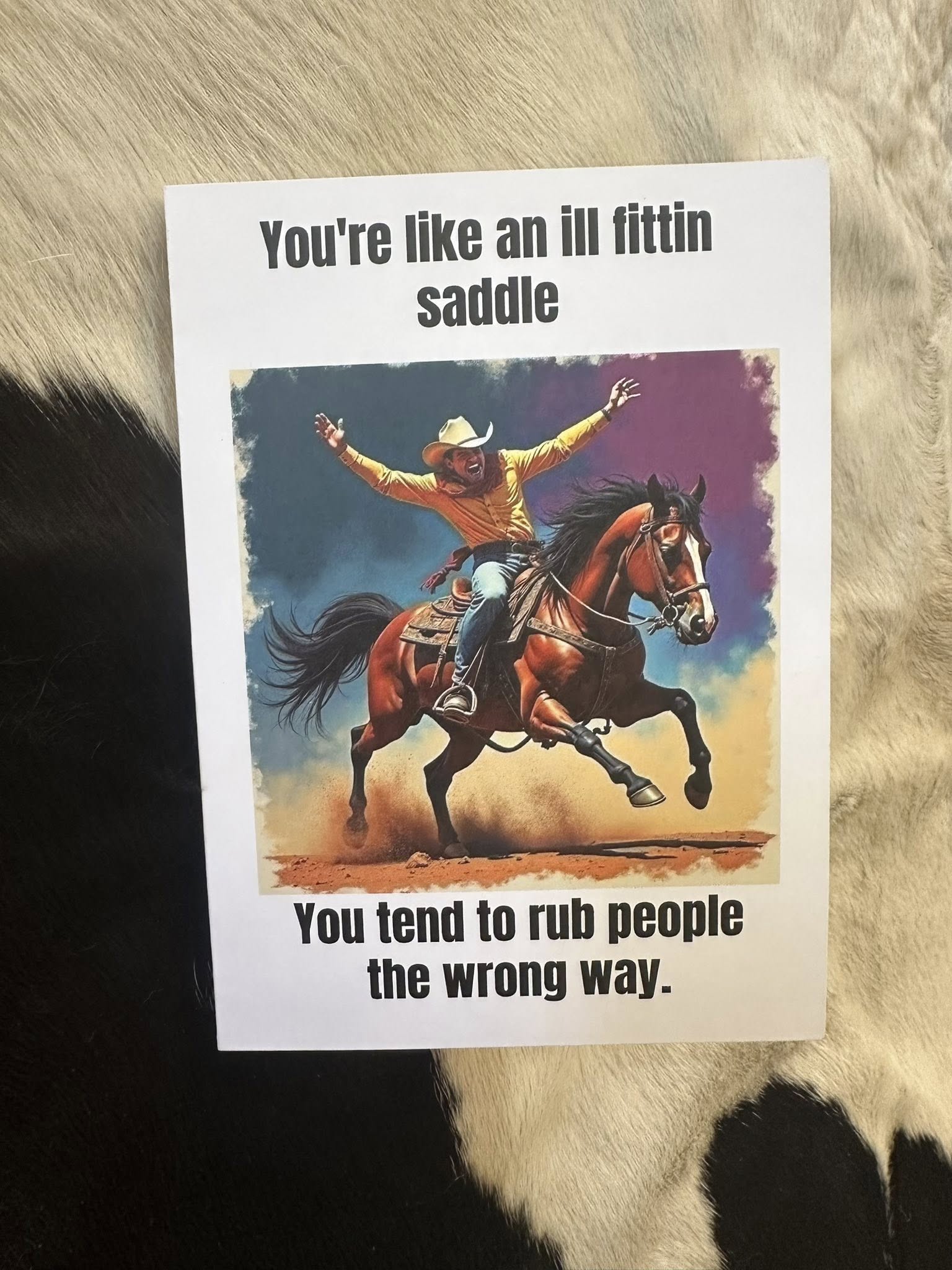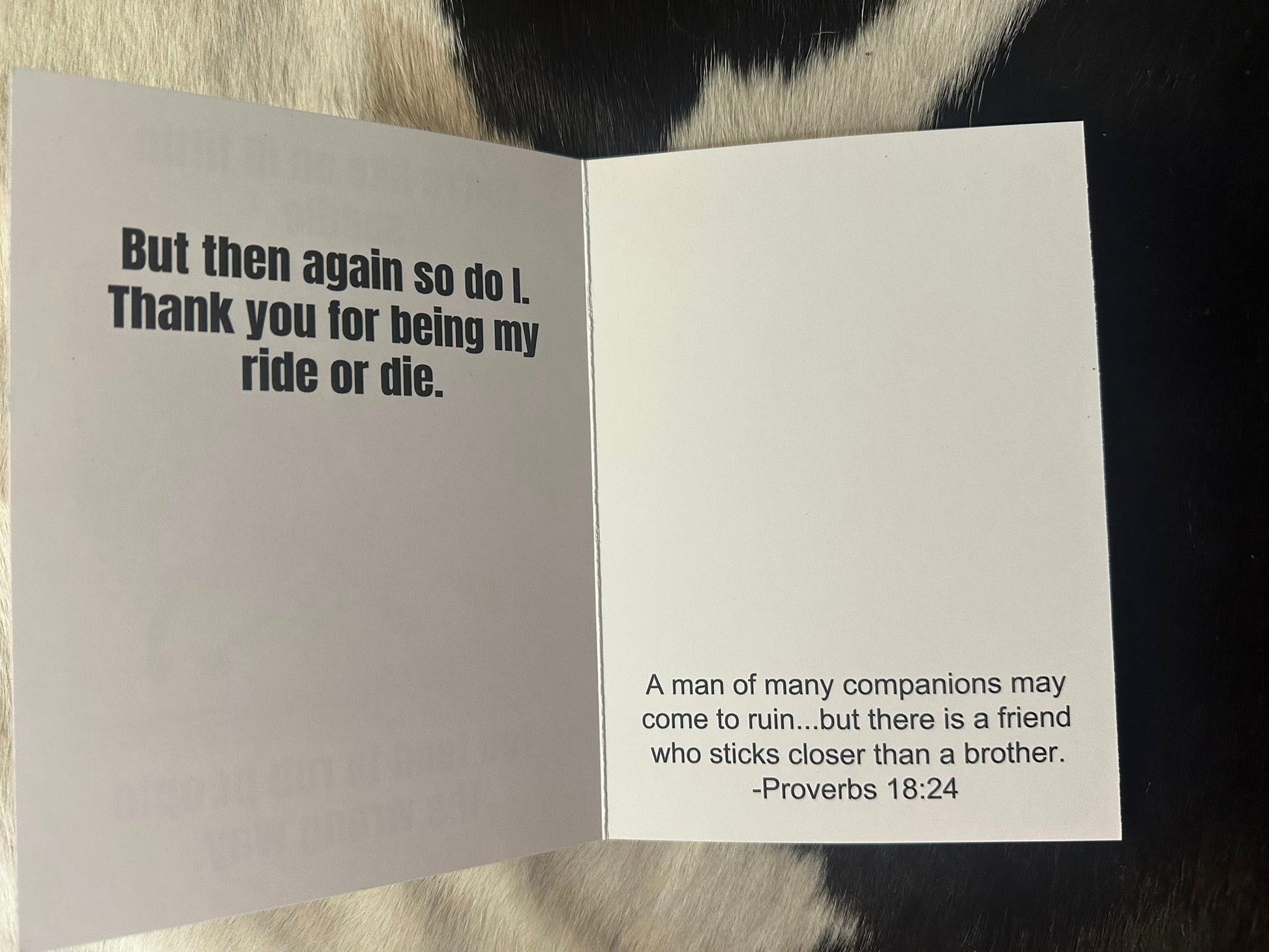 Funny Friend ship card with horse and cowboy on front with Proverbs 18:24